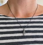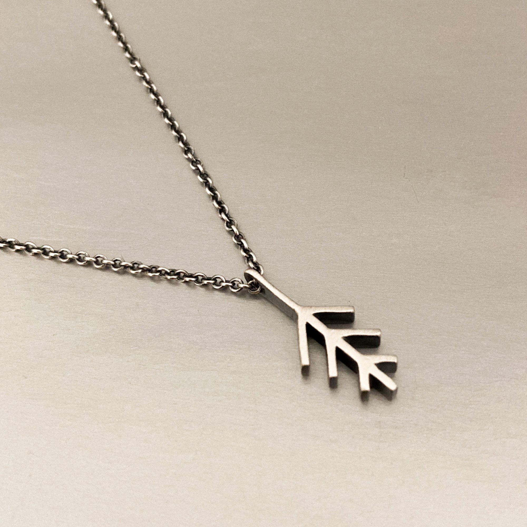 options (find in dropdown menu): choose between a shiny finish on a bright silver chain, or a brushed/matte finish with oxidized (blackened) chain.