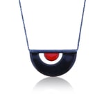 the retro mod necklace is one of those pieces that can handle a casual or a dressy situation with ease - the two tone enamel colors and rounded sleek design will have you feeling nostalgic and futuristic all at the same time.